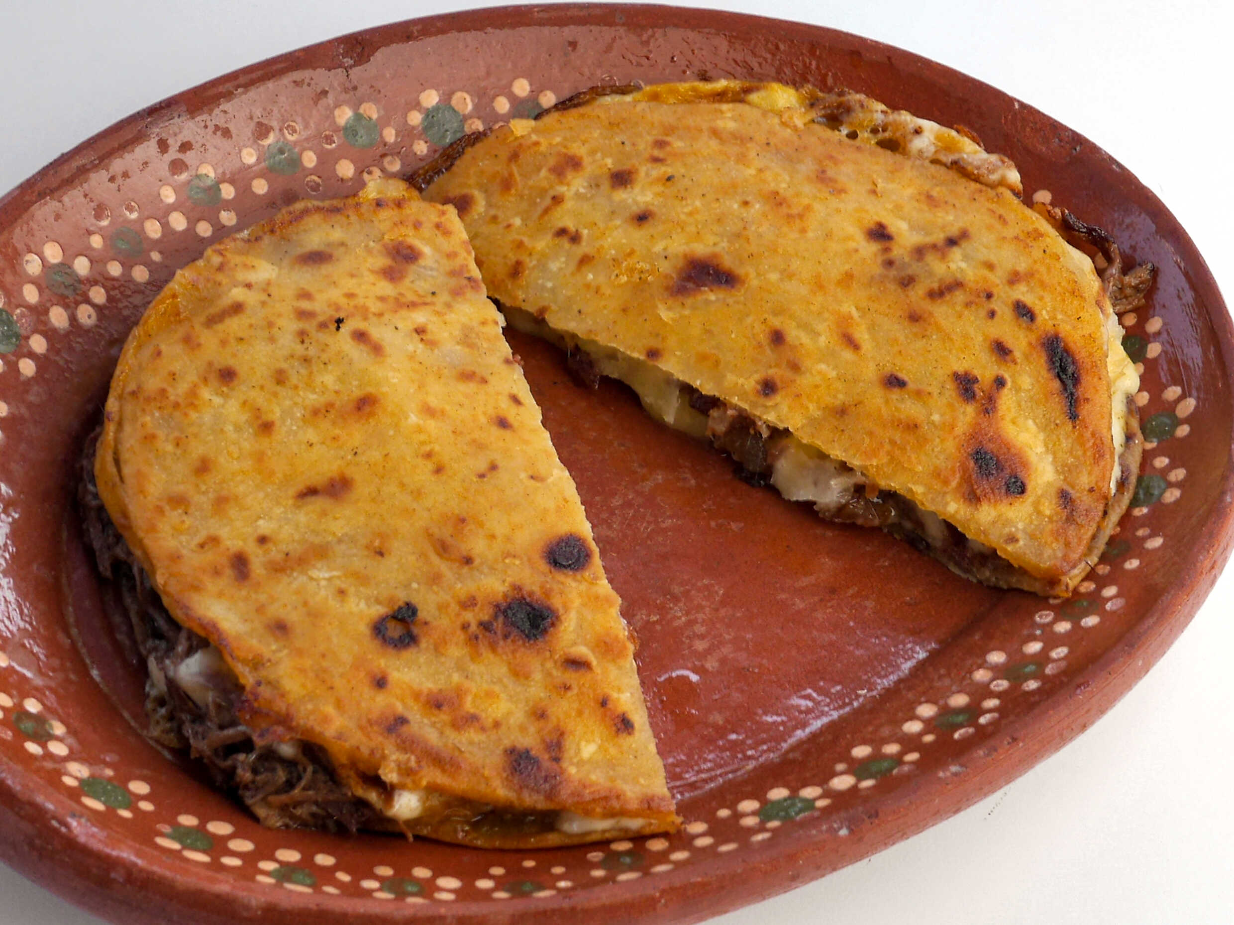 Quesadilla de maíz doblada con el ingrediente de tu elección.