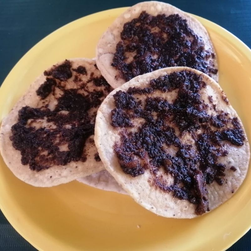 Tortillas de maiz doradas con asientos de Chicharrón