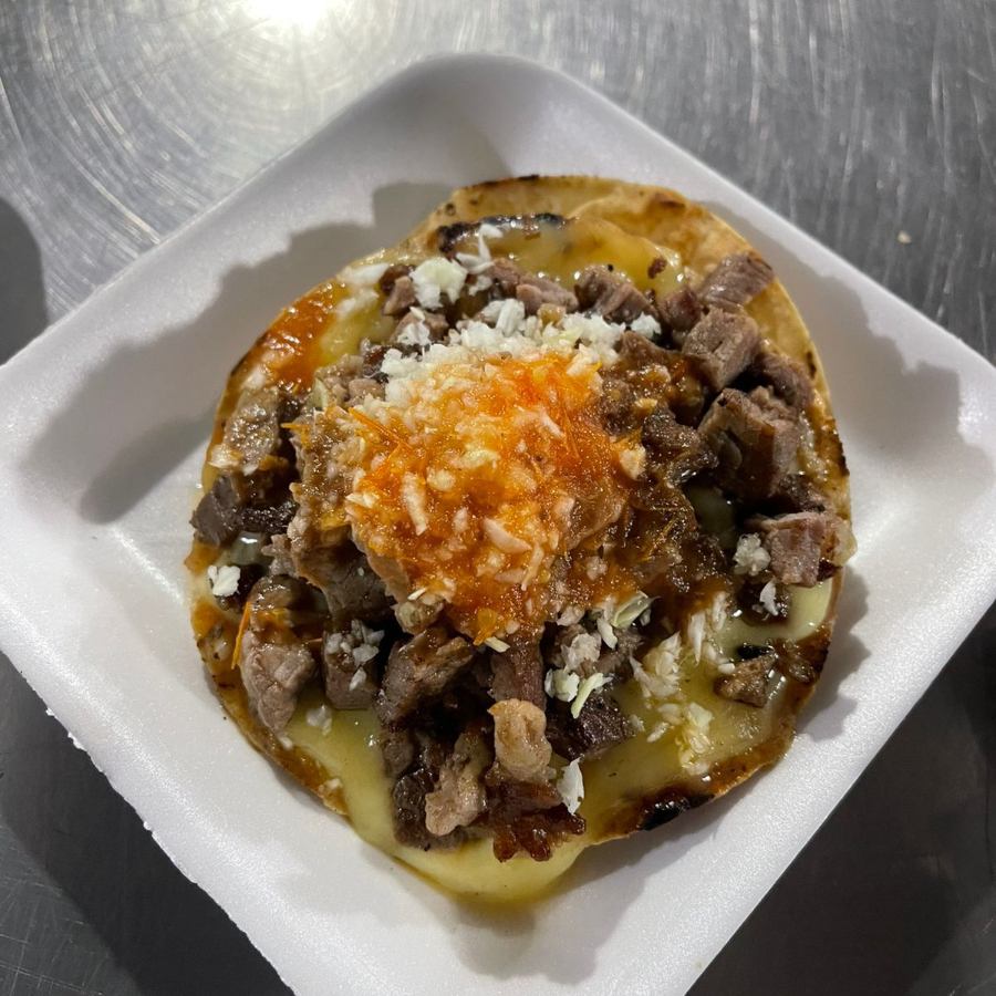 tortilla dorada, carne de res