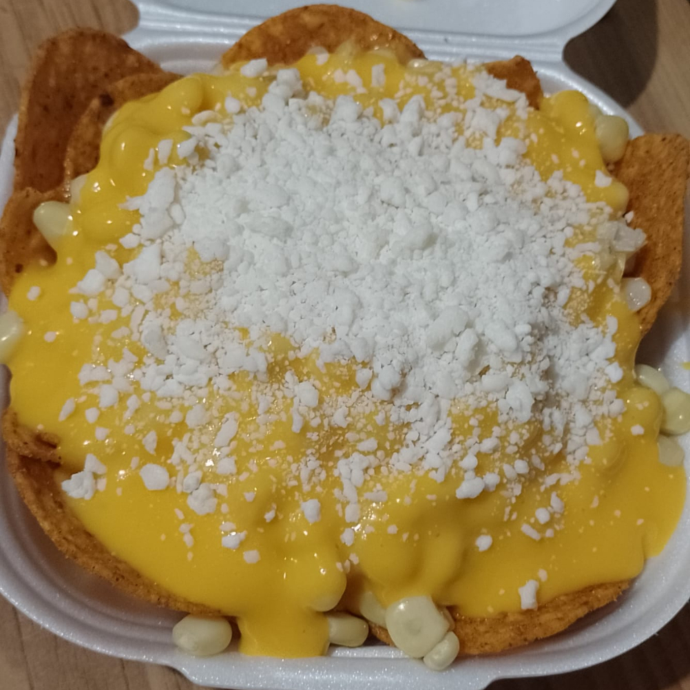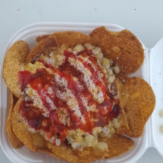 tostitos o cheetos flamin con elote, queso cheddar y queso blanco