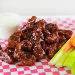 220 g De pollo en tiras bañado en salsa de tu elección.