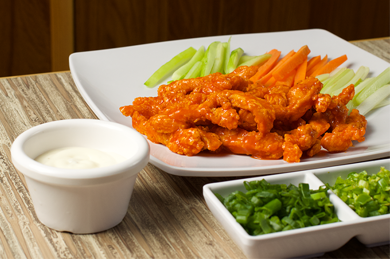 220 g De pollo en tiras bañado en salsa de tu elección.