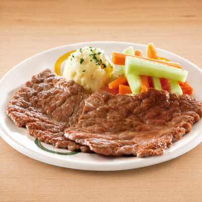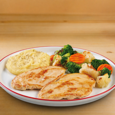 Servida con puré de papa y zanahoria con pepino. ¡Incluye Sorpresa!