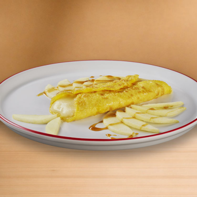 Rellenas de queso crema, bañadas con cajeta y trozos de nuez; servidas con plátano (2 pzas).