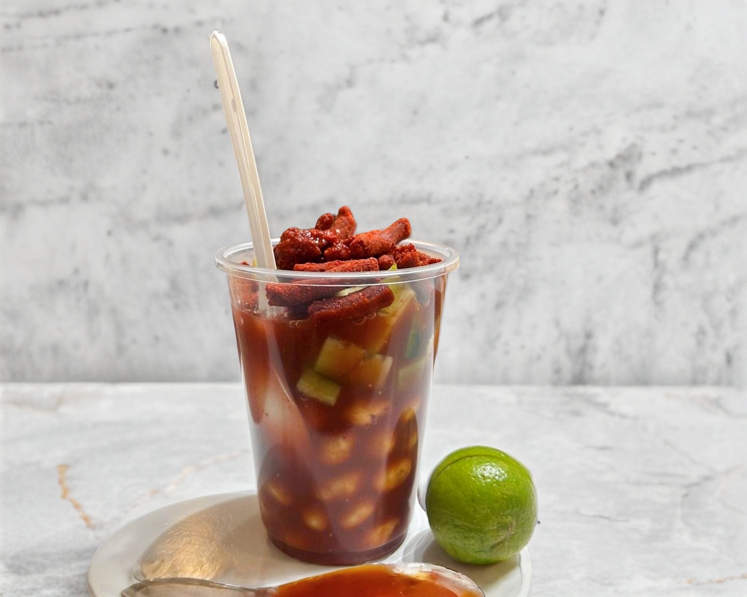 Una fresca combinación de jícama, pepino, mango, cacahuate y rielito, todo bañado con nuestro clamato especial. ¡Un toque refrescante, picosito y lleno de sabor en cada bocado!