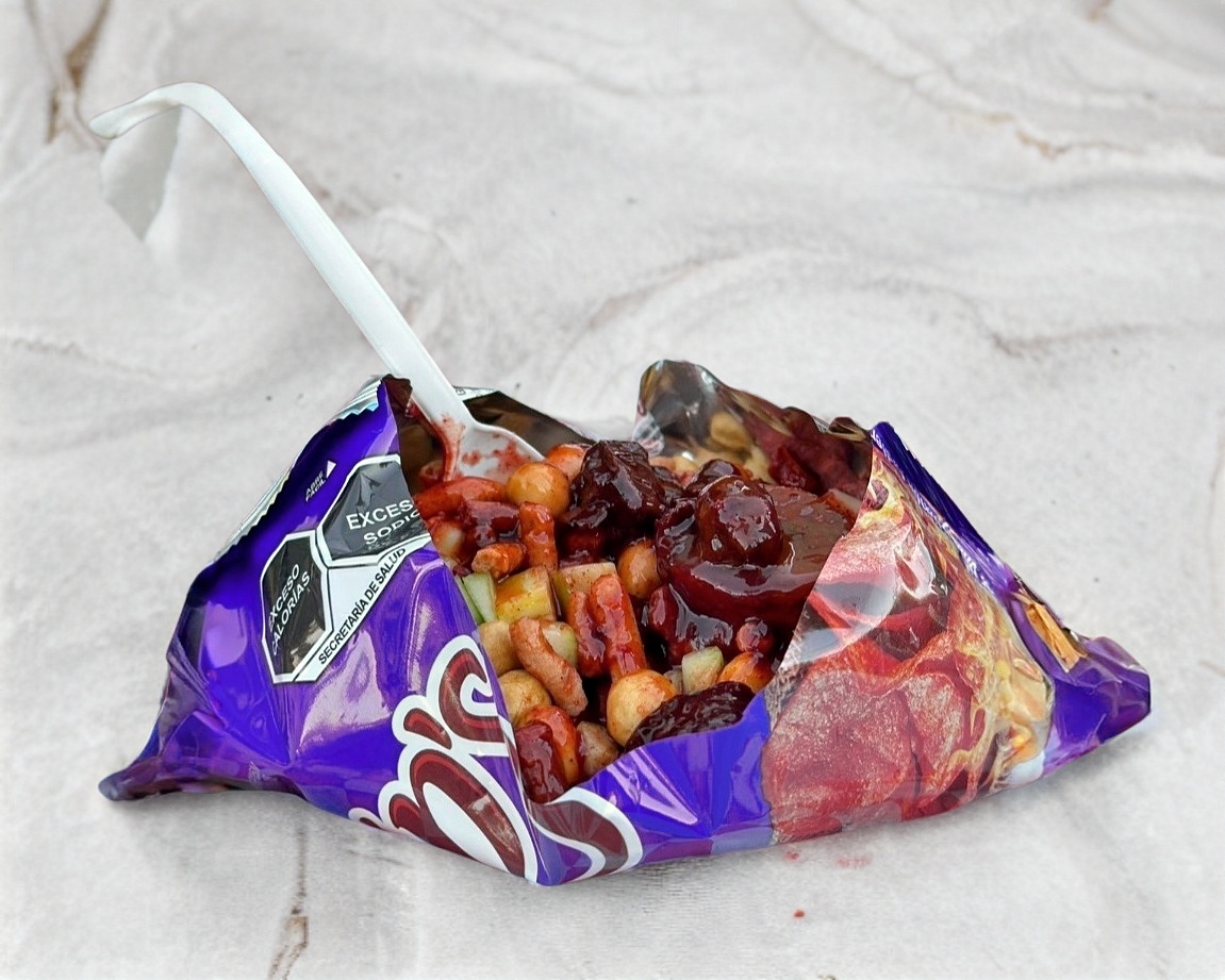 La botana perfecta para quienes cuidan lo que comen sin dejar el antojo. Chips de coliflor o Susalias (¡solo 90 calorías por paquete!), acompañadas de mango, pepino, jícama, cacahuates naturales y arándanos enchilados. Todo bañado con jugo B8 preparado, limón y las salsas de tu elección. ¡Frescas, ligeras y llenas de sabor!