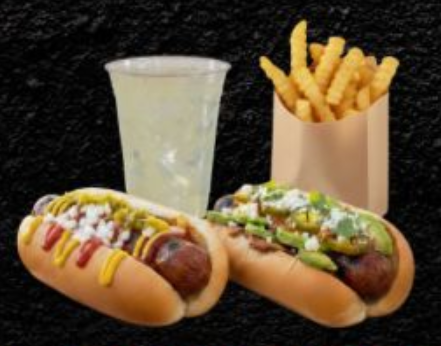1 Hot dog clásico, 1 hot dog especial, 1 orden de papas a la francesa y 1 bebida a elegir.
