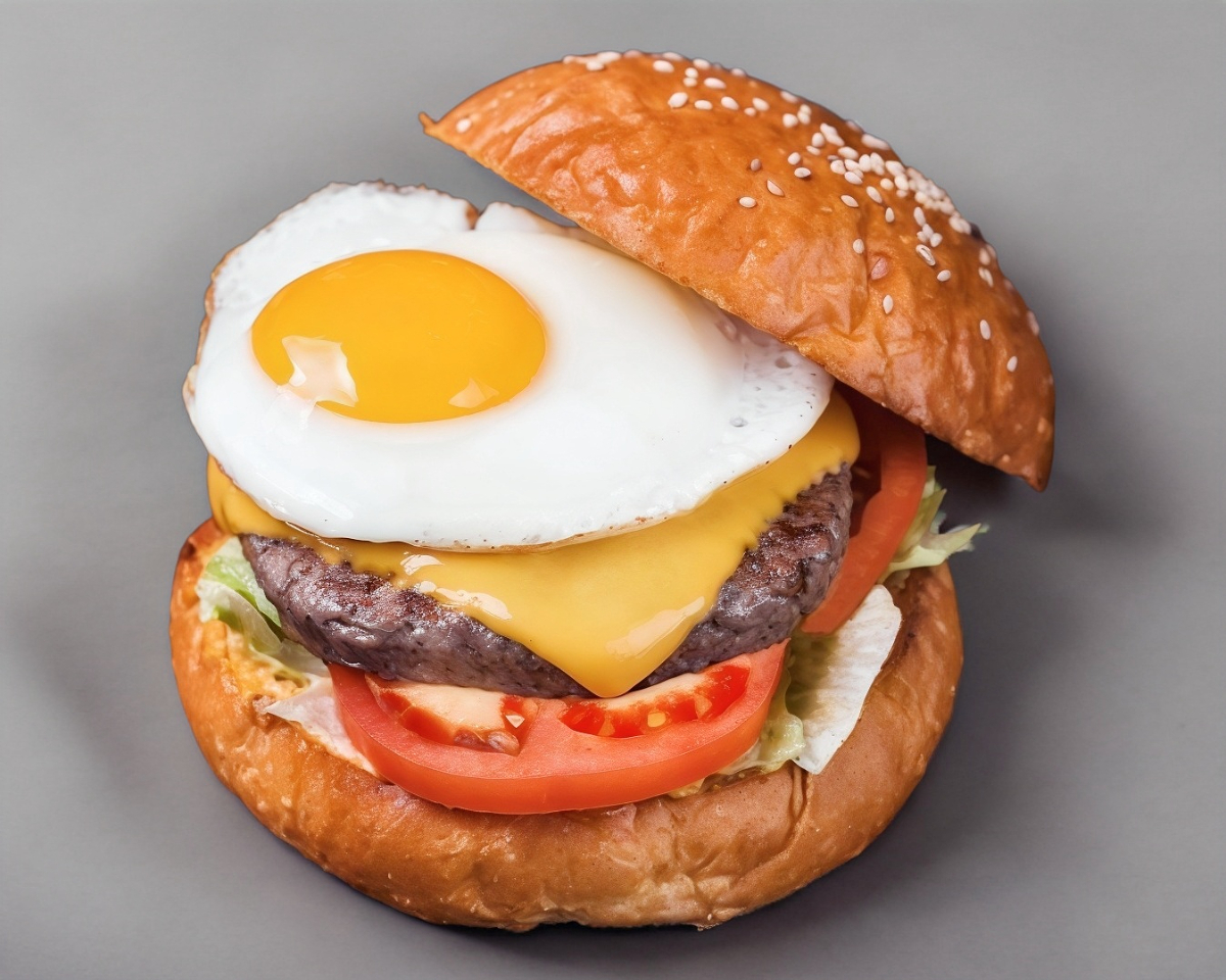 Pan brioche, carne al carbón , queso manchego, huevo ketchup aderezo
