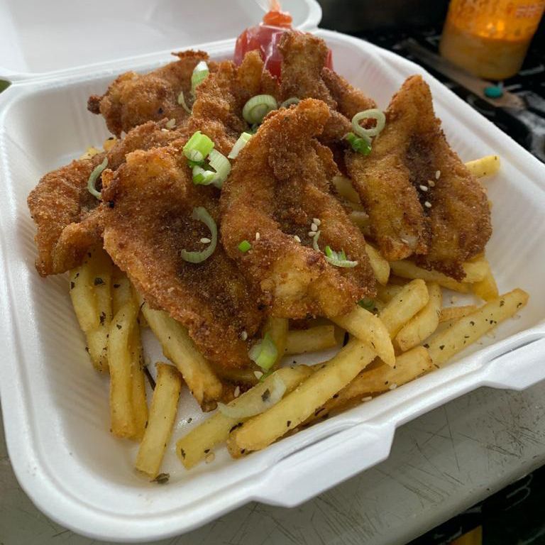 Pan artesanal, camarones empanizados, queso manchego , verduras frescas