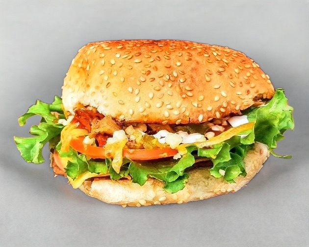 Jamón, queso, cebolla, tomate, piña y queso hebra.
