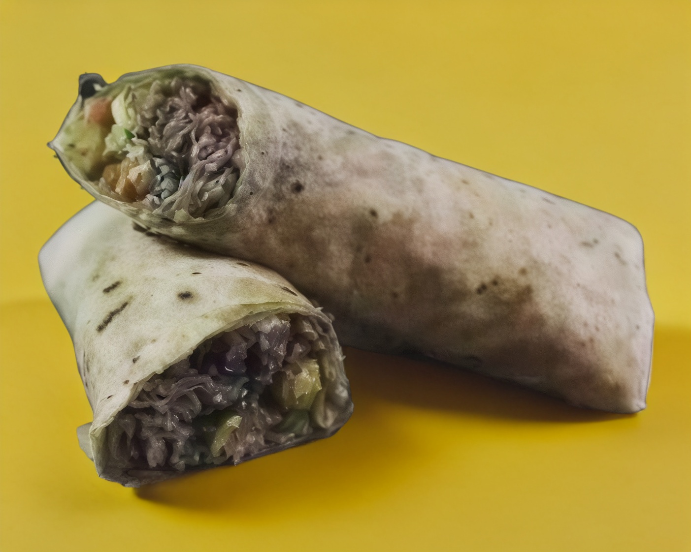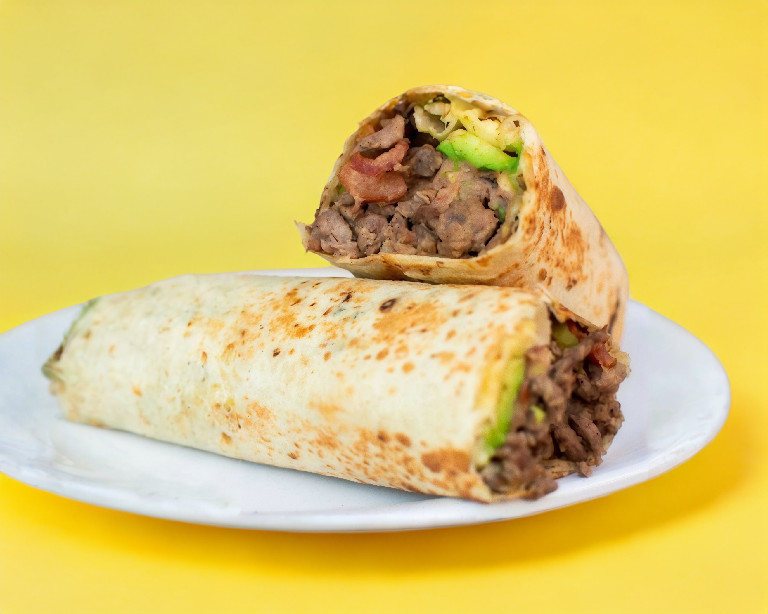 Mega tortilla de harina con frijoles Sirloin , pico de gallo, aguacate, aderezo y salsa habanero