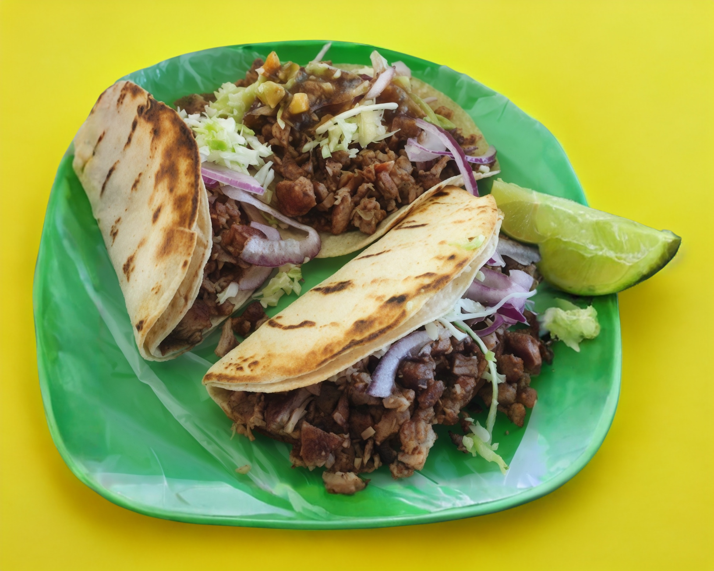 Carne de res asada al carbon, queso manchego , cebolla y pepinillos (no incluye tomate y lechuga)
