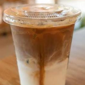 1 shot de espresso, con polvo capuccino, leche y hielo en vaso de 16 onzas.