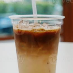 1 shot café, saborizante de vainilla, leche y hielo en vaso de 16 onzas.