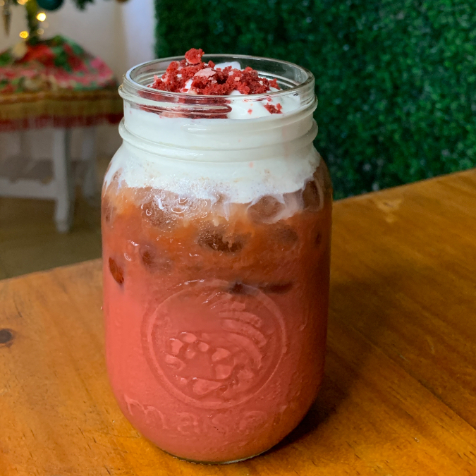 Deliciosa bebida con sabor a tu postre favorito, presentando una version helada a base de espresso, leche deslactosada, preparado especial de red velvet acompañado con un cold foam de cheesecake , 100% delicioso, en vaso de 16 oz