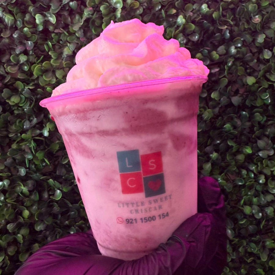 Deliciosa combinacion de yogurt natural y salsa de berries mezclado con hielo y cubierto con crema batida