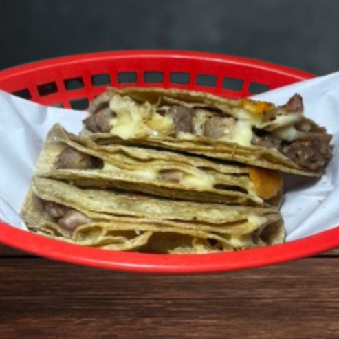 Jugoso bistec sazonado con nuestra receta mezclado con queso fundido, servido sobre doble tortilla amarilla bien doraditos a la plancha, no olvides coronarlos con nuestra salsa de cebollitas con habanero, el toque ácido y picosito que los hace inolvidables.