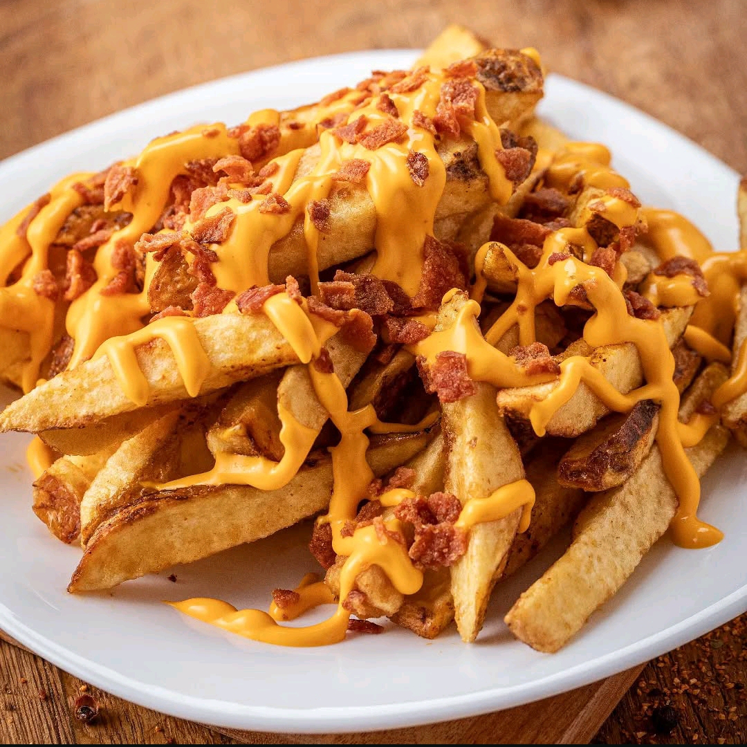 Papa onduladas con queso amarillo tocino chile jalapeño