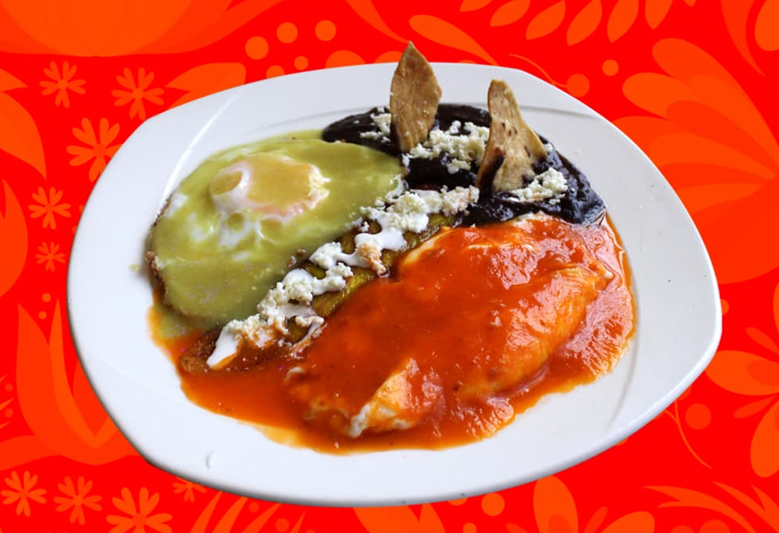 3 Enchiladas, huevos, frijoles, ensalada y café.