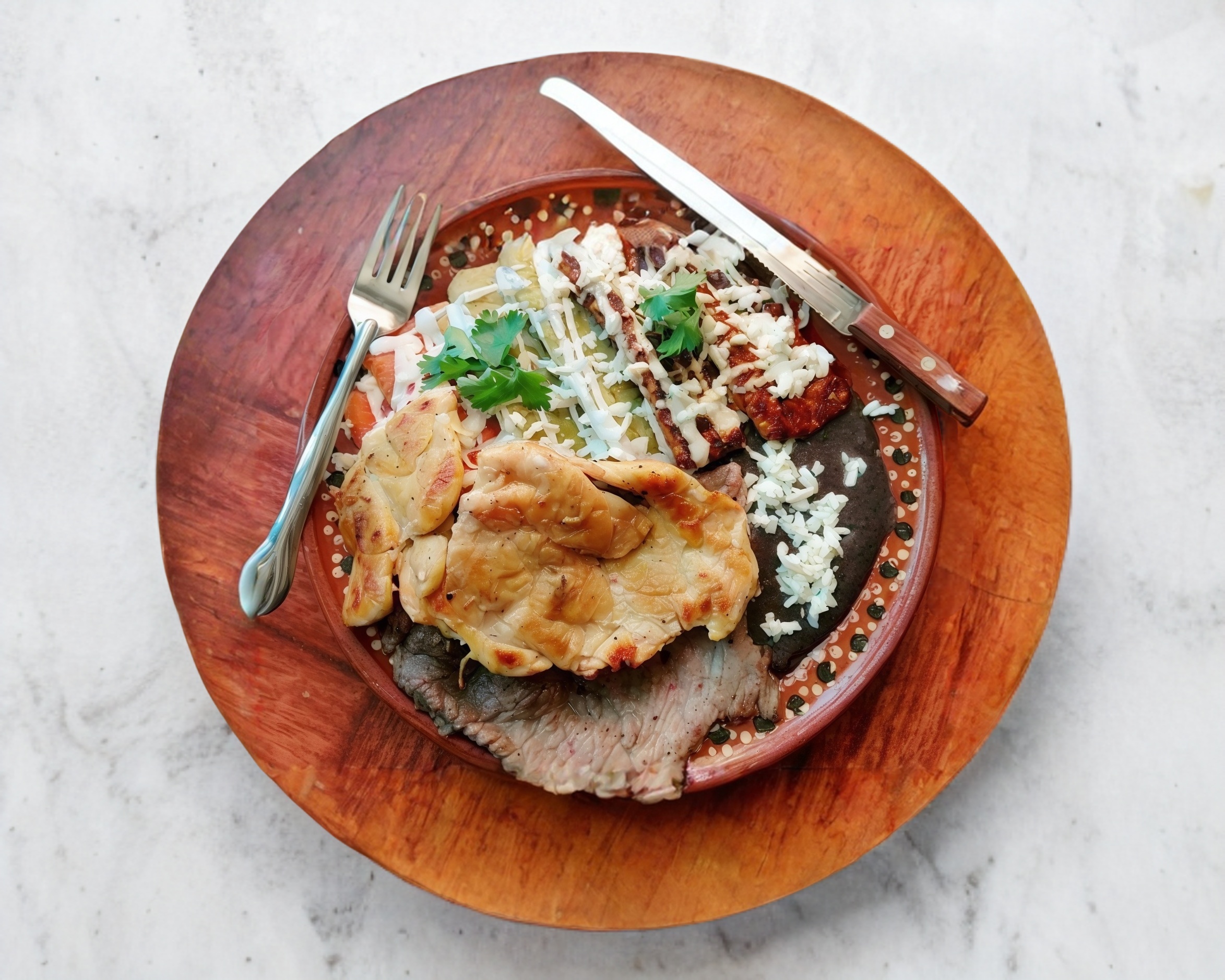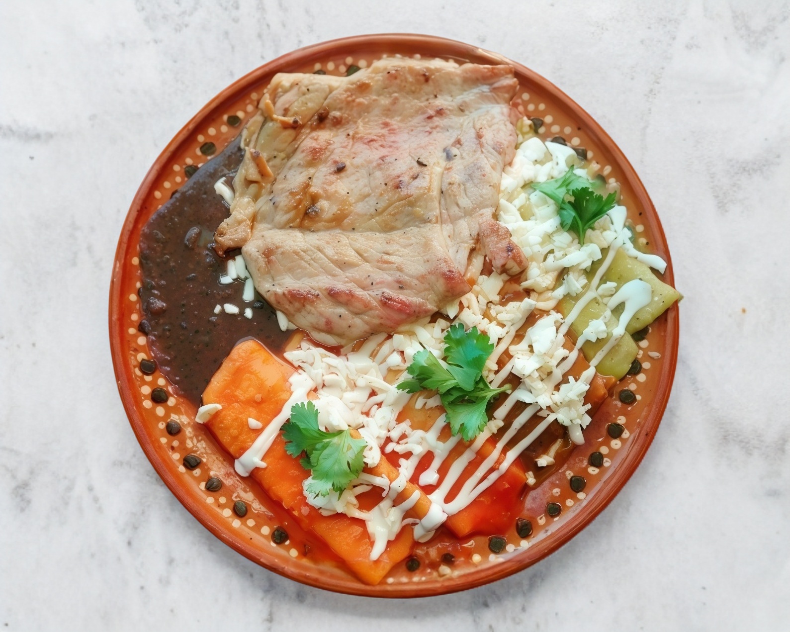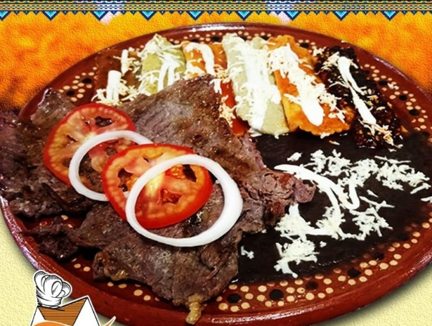 130 gramos de Carne a elegir *1 + Porción de Frijoles*1 + 10 Enchiladas Sencillas a elegir*1