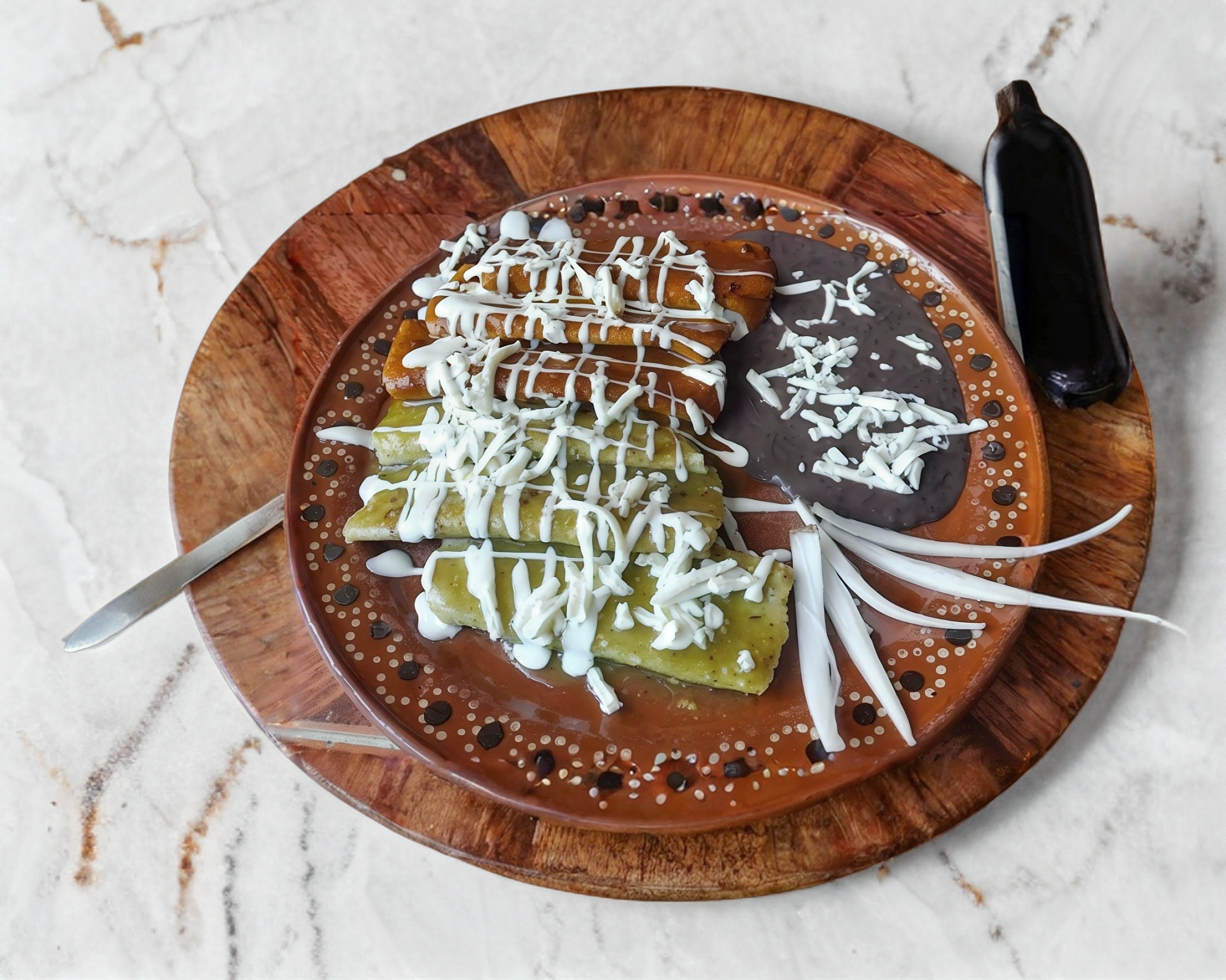 2 Carnes*1 + Porcion de Frijoles*1 + 10 Enchiladas Sencillas*1. Plato personal