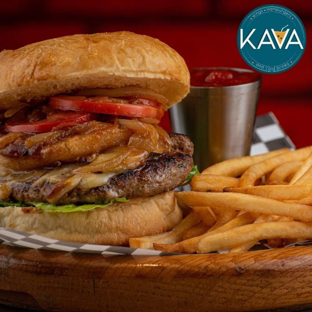 00 grs. De carne, pan artesanal, queso gouda, jamón, rebanada de piña, salsa BBQ hawaiana, cebolla caramelizada, vegetales y aderezos. Incluye papas a la francesa.