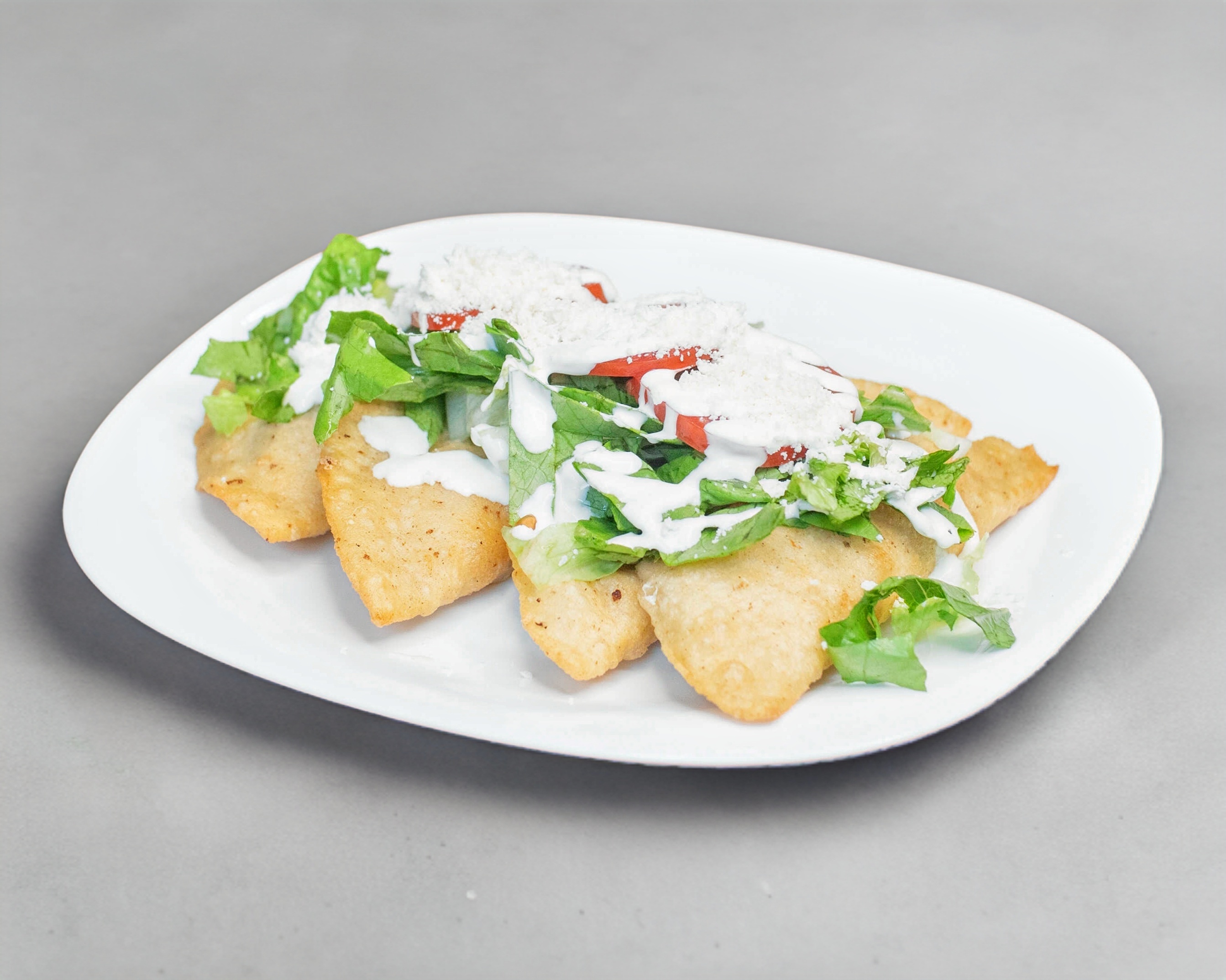 Orden con 4 empanadas, pueden ser de pollo, queso, jamón con queso o mixtas. Acompañadas con lechuga, queso y crema.