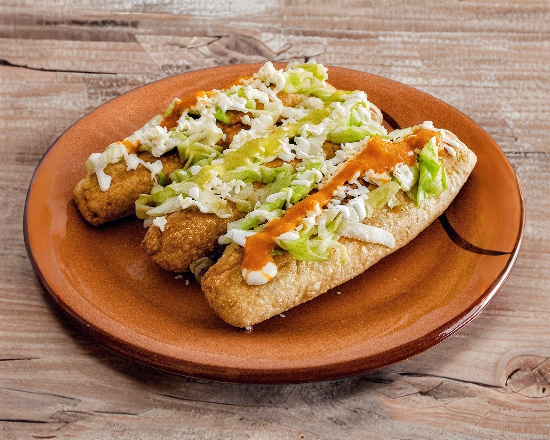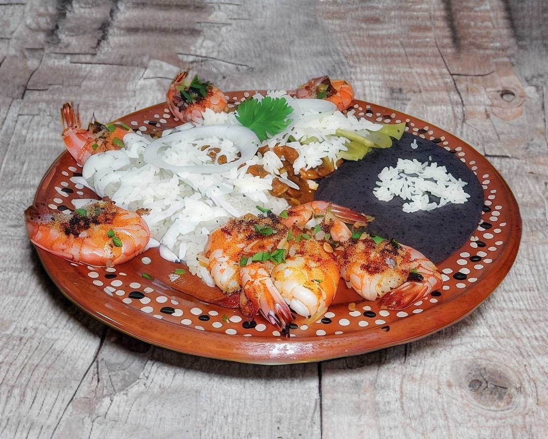 Enchiladas sencillas*1 + Camarones ó Arrachera*1 + Porción de Frijoles*1