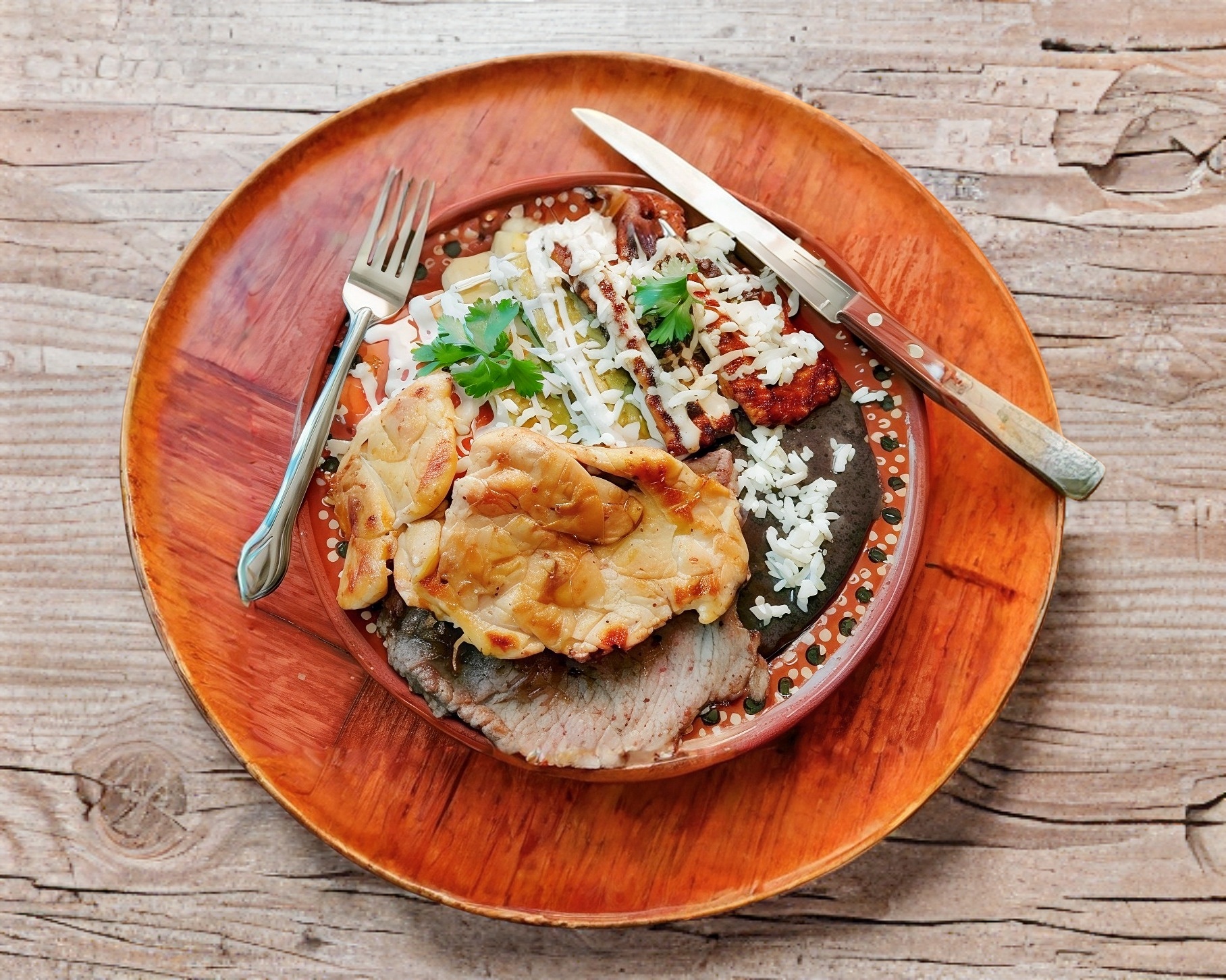 Enchiladas sencillas*1 + Cecina*1 + Porción de Frijoles*1