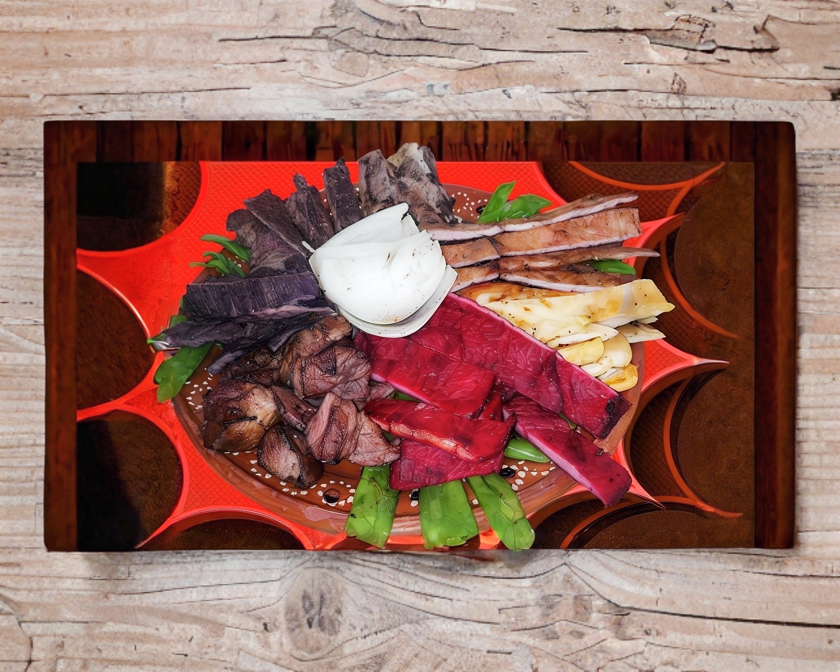 La carne no incluye algún tipo de acompañante y se puede elegir 2 tipos de carne, solo se puede incluir por paquetes.