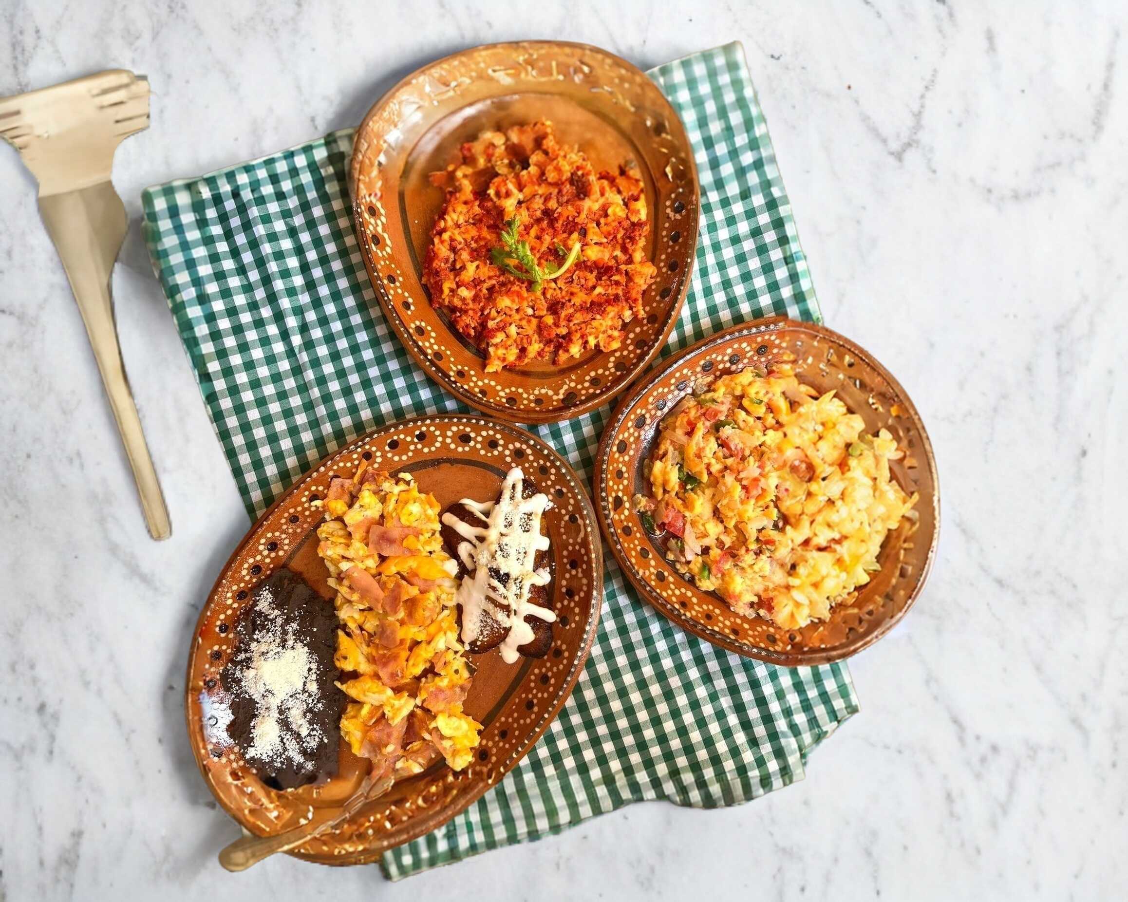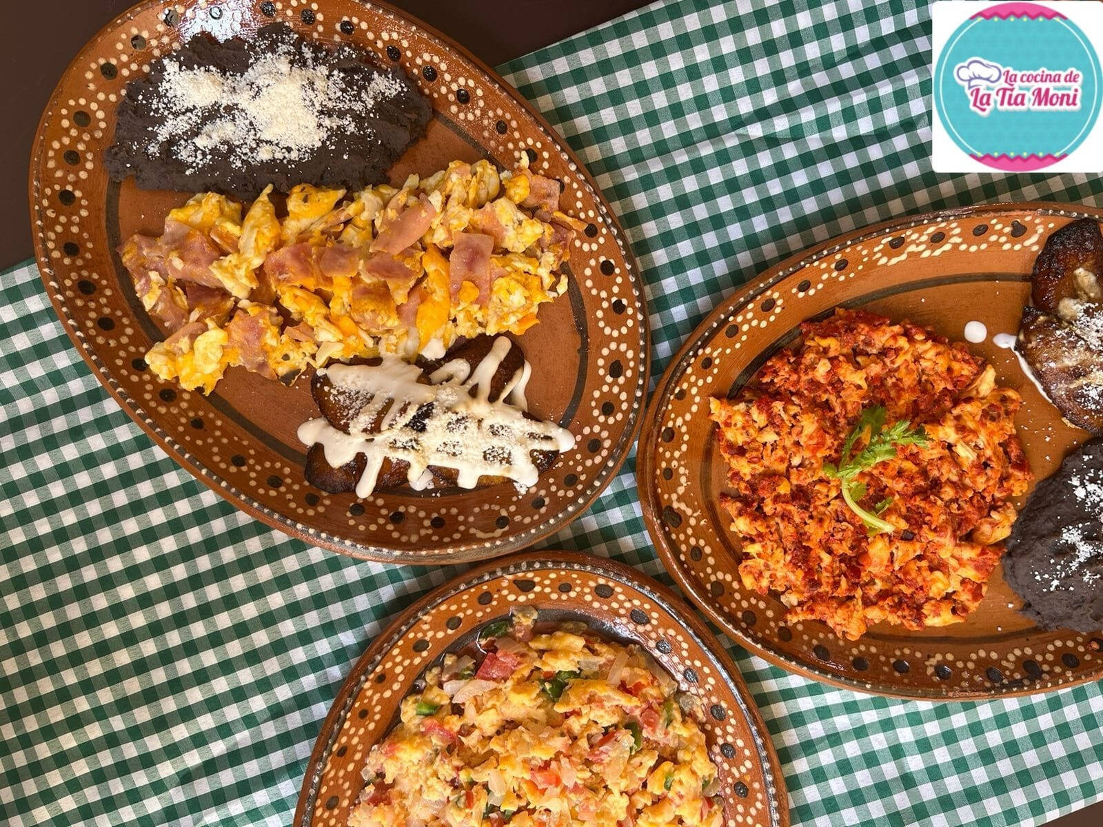 Con jamón, estrellados, a la mexicana con longaniza, frijolitos y plátanos fritos.