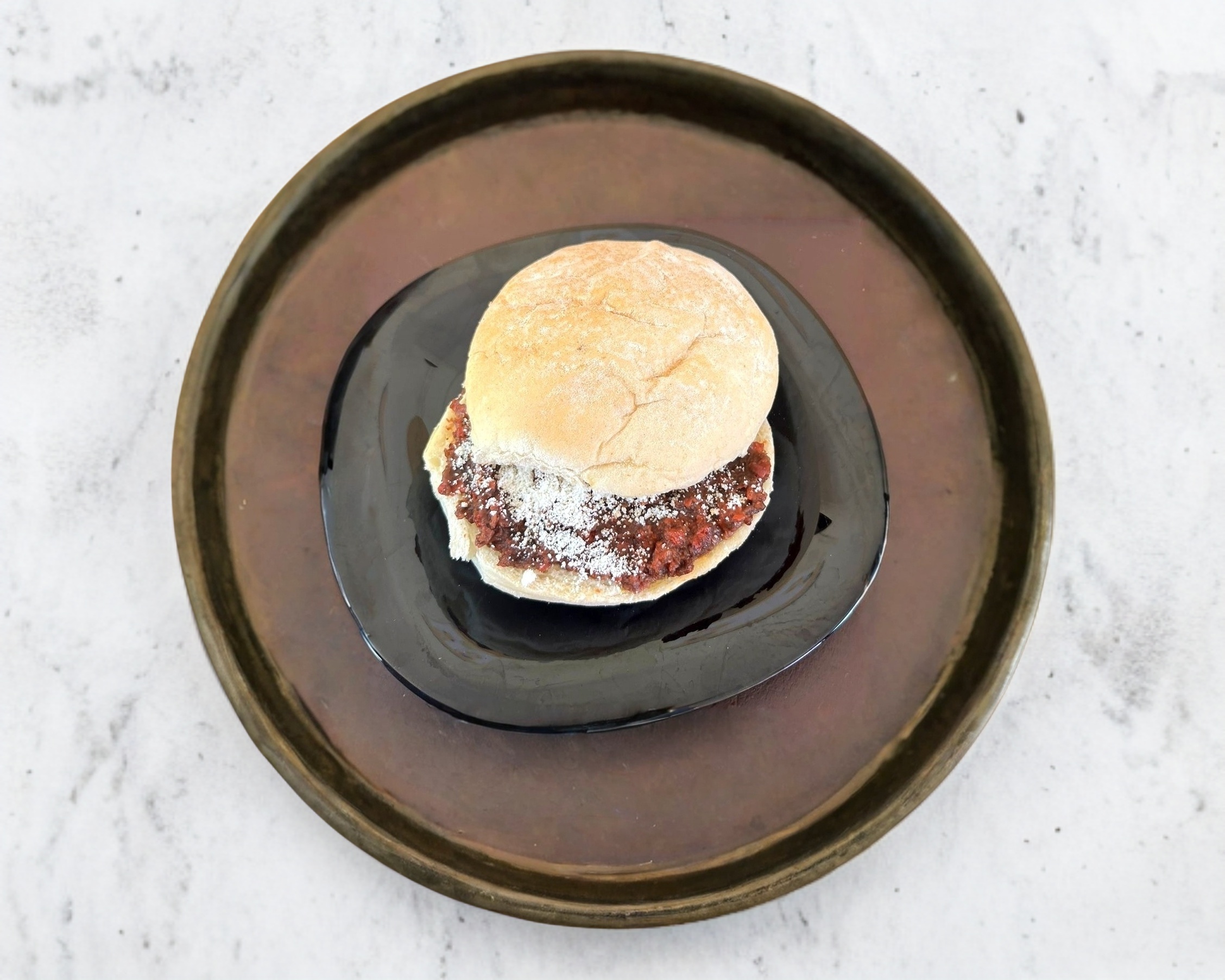 Tortilla de verdad maiz hecha a mano, con una base de frijoles, queso de hebra, longaniza, carne de chinameca, plátanos fritos, queso, crema y aguacate, su diámetro es aproximado de 24 cm.