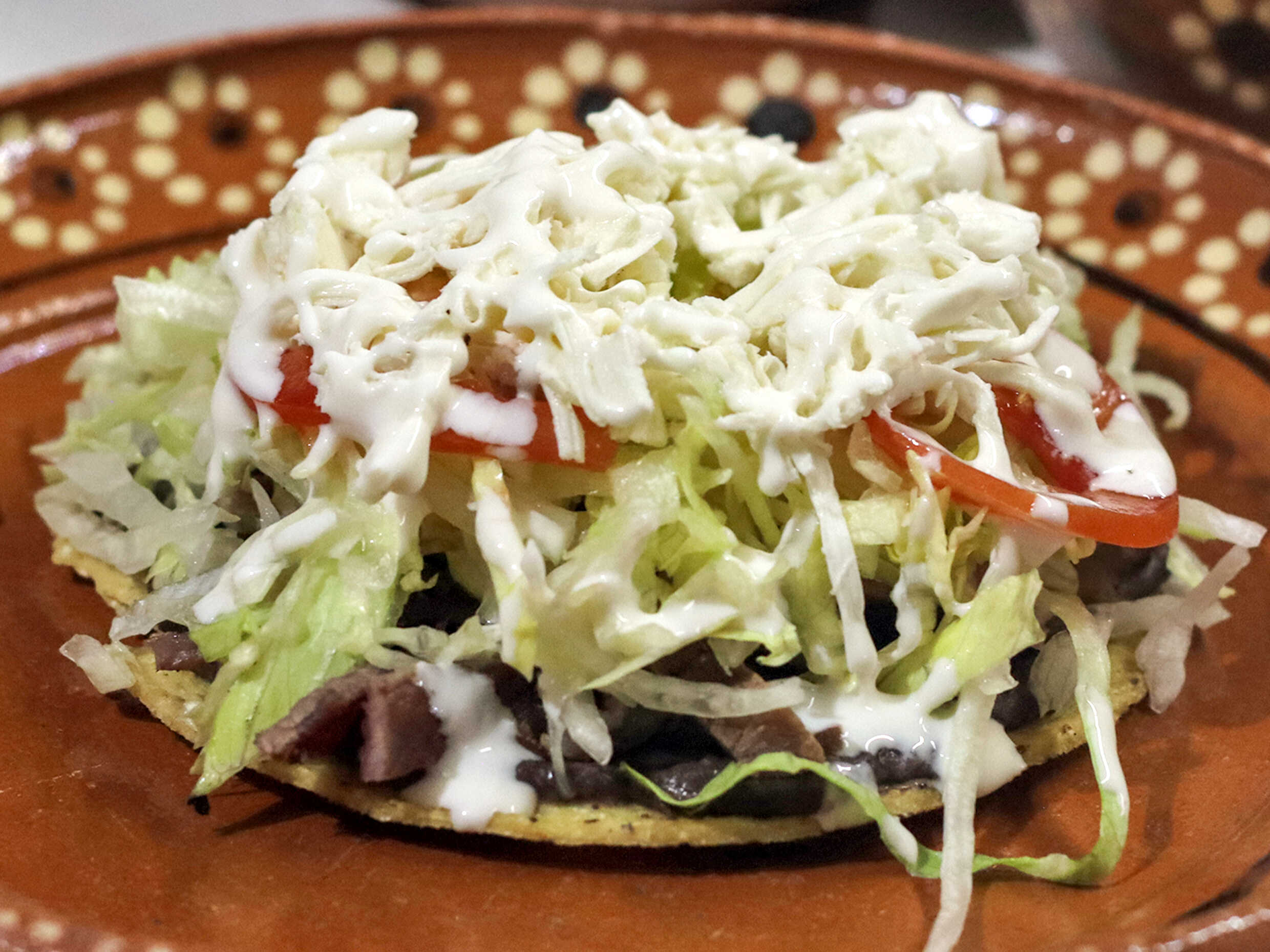Frijol, lechuga, queso y auténtico chorizo oaxaqueño.