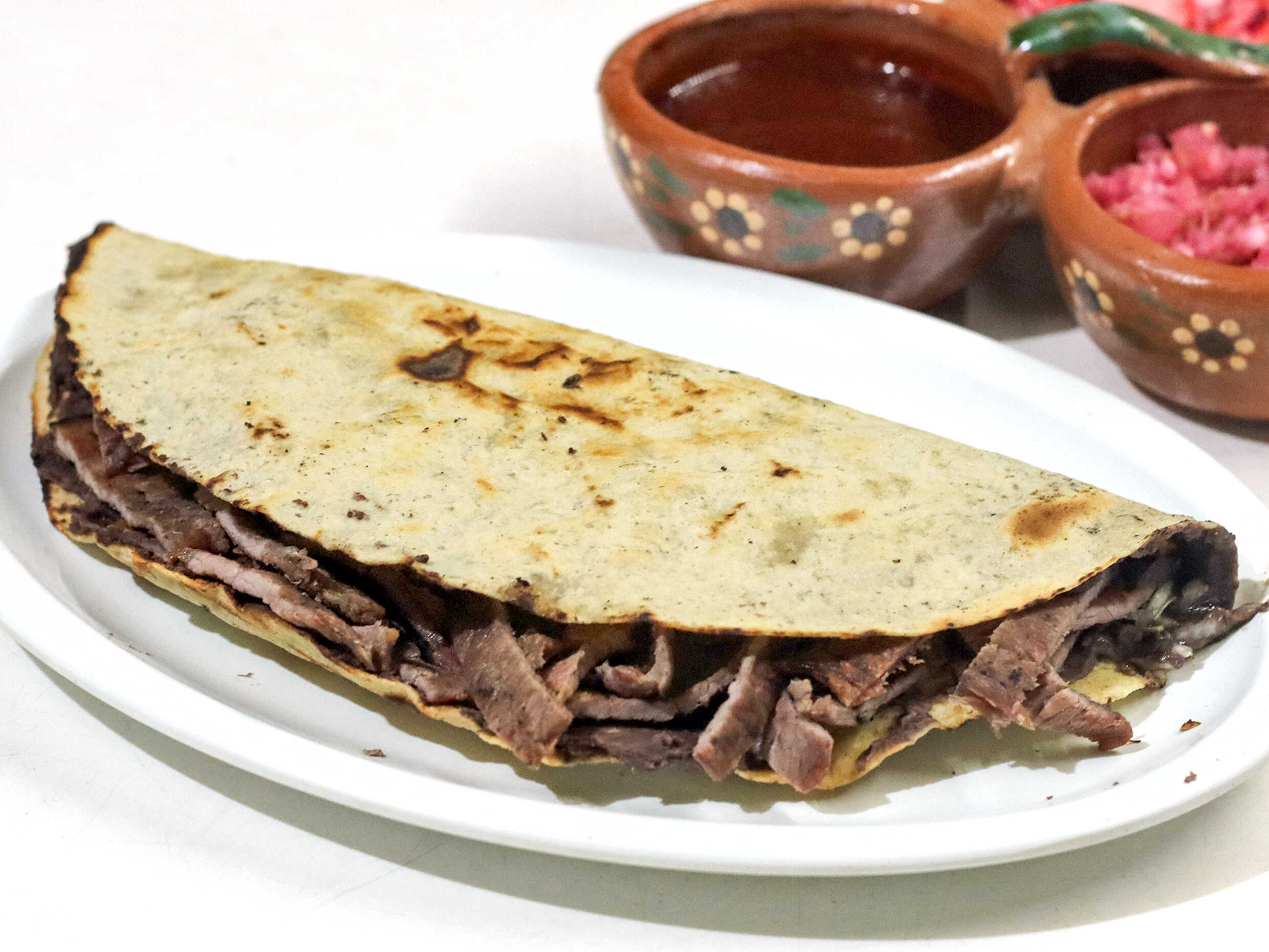 Asiento, frijol, lechuga, quesillo y combinación de cecina con chorizo oaxaqueño.