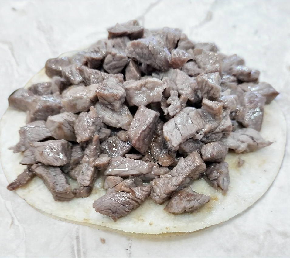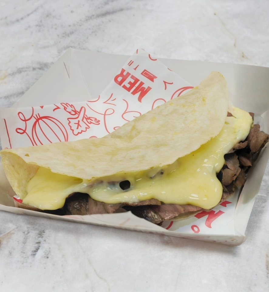 Elaborada con tortilla de harina casera, jugosa carne de sirloin y rebosante de queso gouda