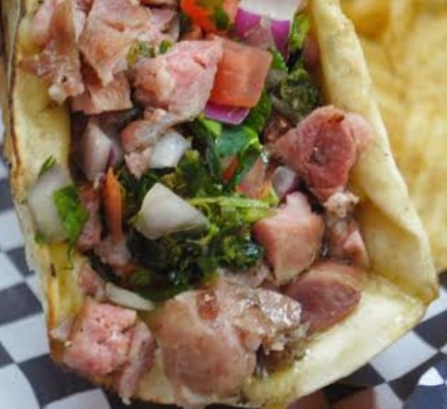 Tortilla Grande de maiz con 120 gr de carne de cerdo incluye piña