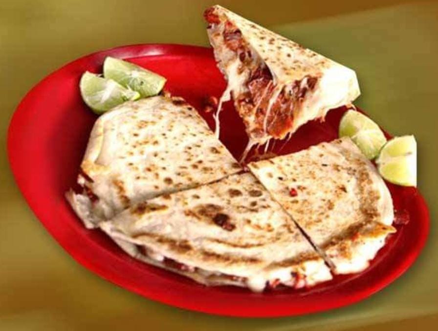Deliciosa carne a tu elección (pastor o asada) gratinada con queso mozarela en medio de 2 tortillas de harina a la plancha.