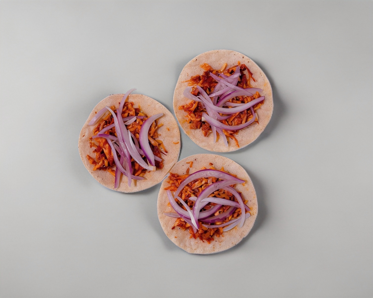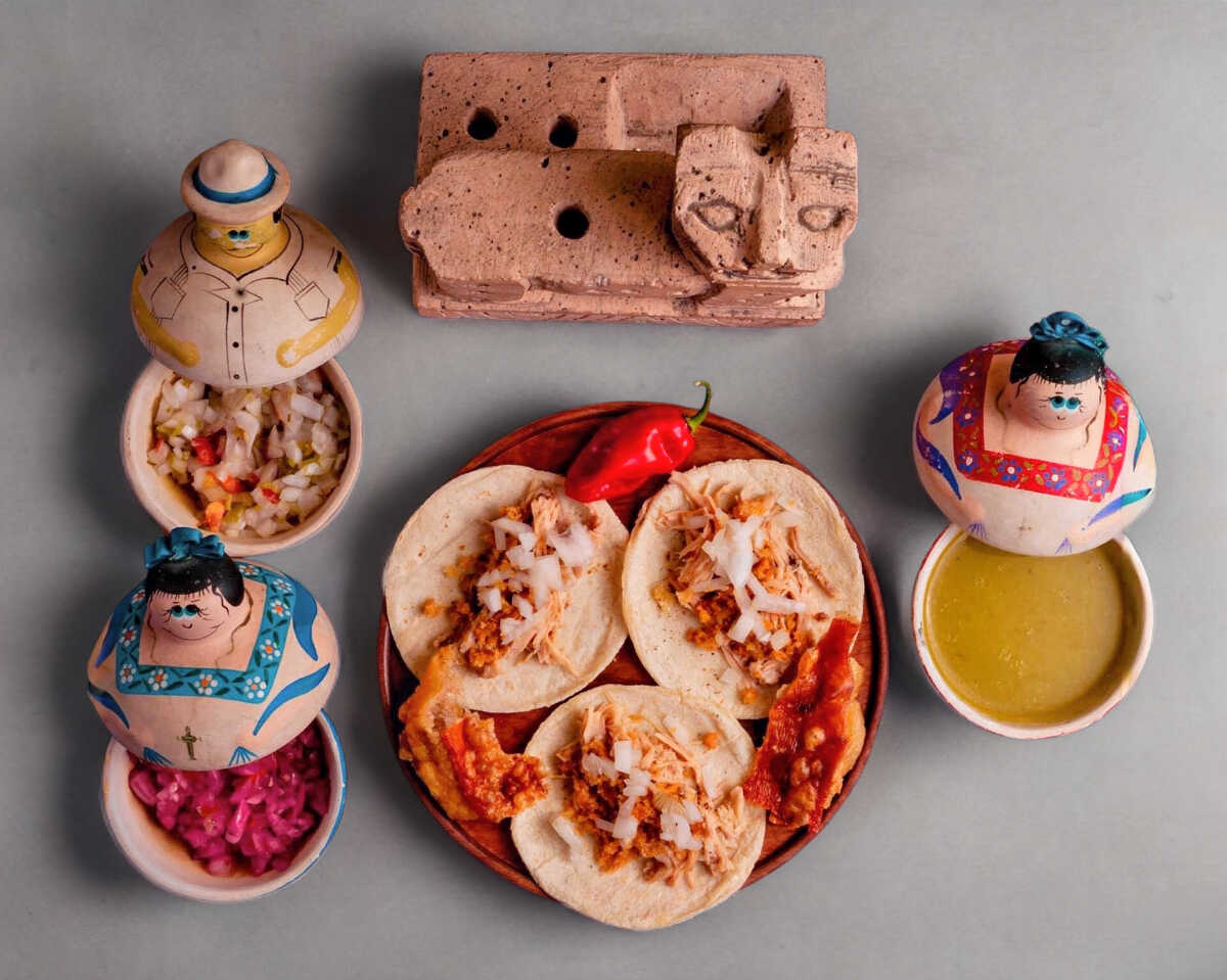 En maya píibi'k'éek'en, rico taco servido con su rica cebolla morada, chile habanero y su delicioso jugo por encima de la carne.
