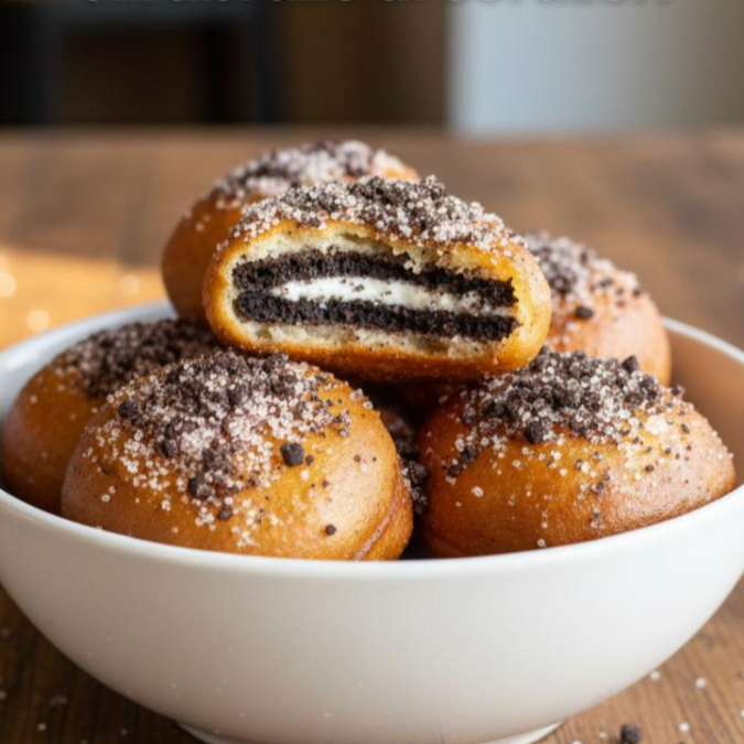Cuatro galletas Oreo fritas bañadas en azúcar de Oreo