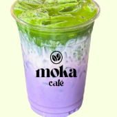 Matcha con latte y un toque de Taro, combinación cremosa y única
