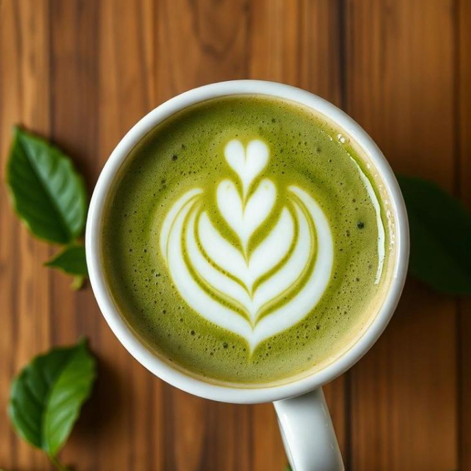 Tè verde japones molido,batido con leche caliente para un sabor suave y reconfortante