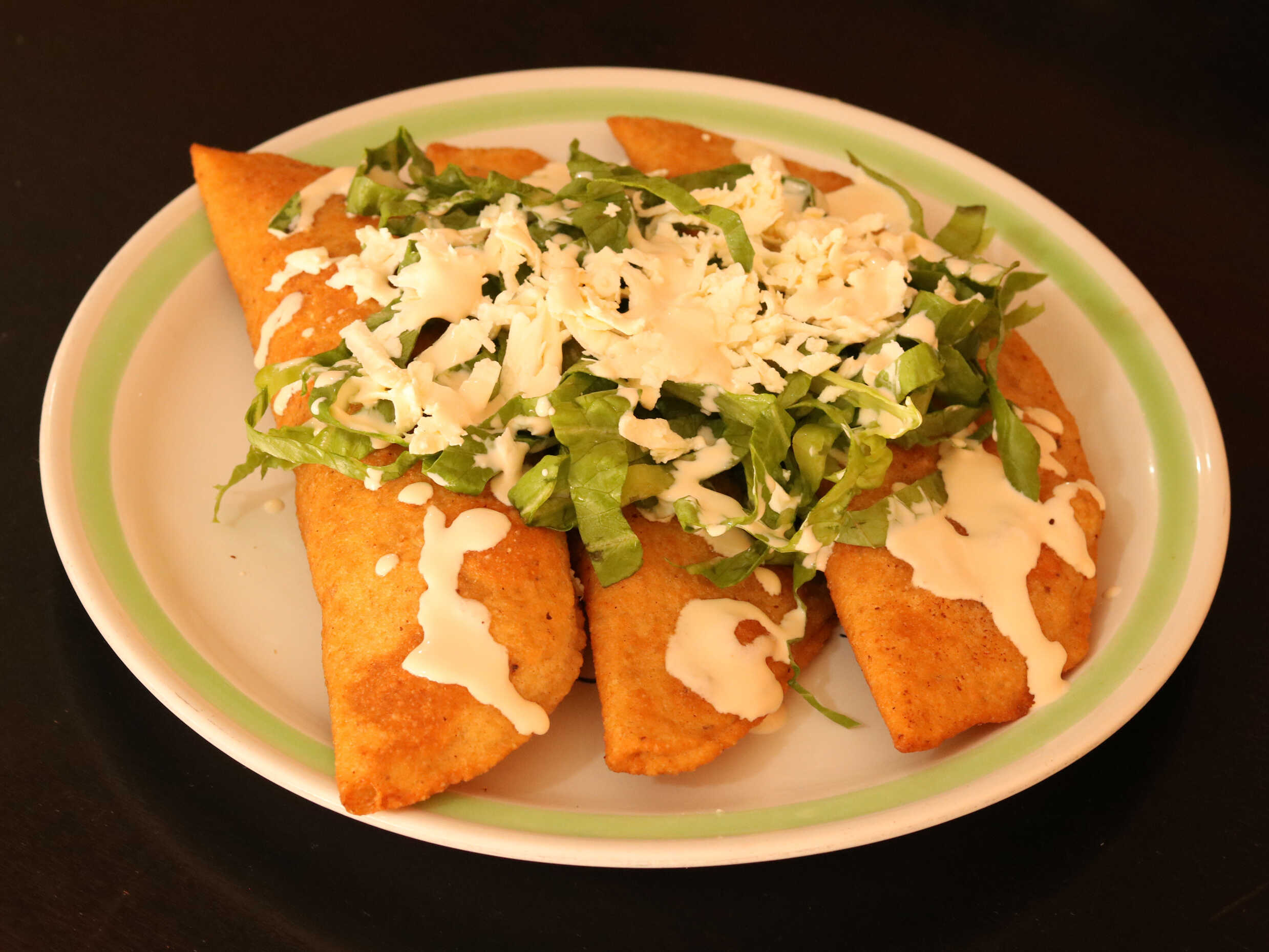 Orden de 3 empanadas elige tu proteína, acompañadas de lechuga, queso y crema