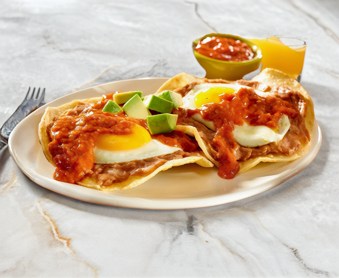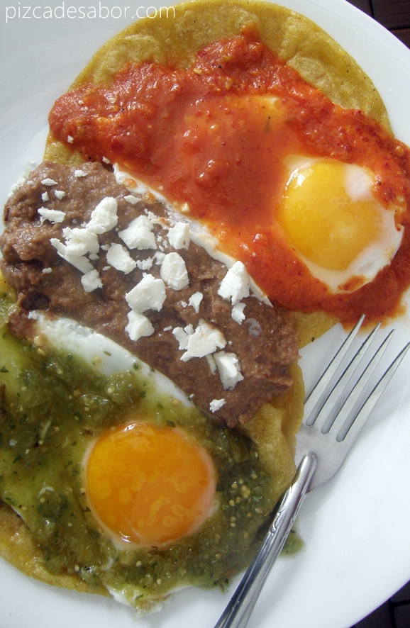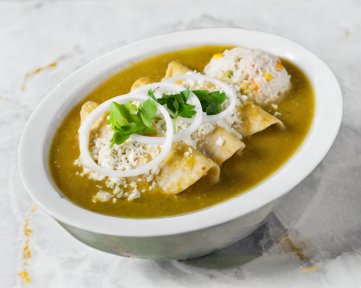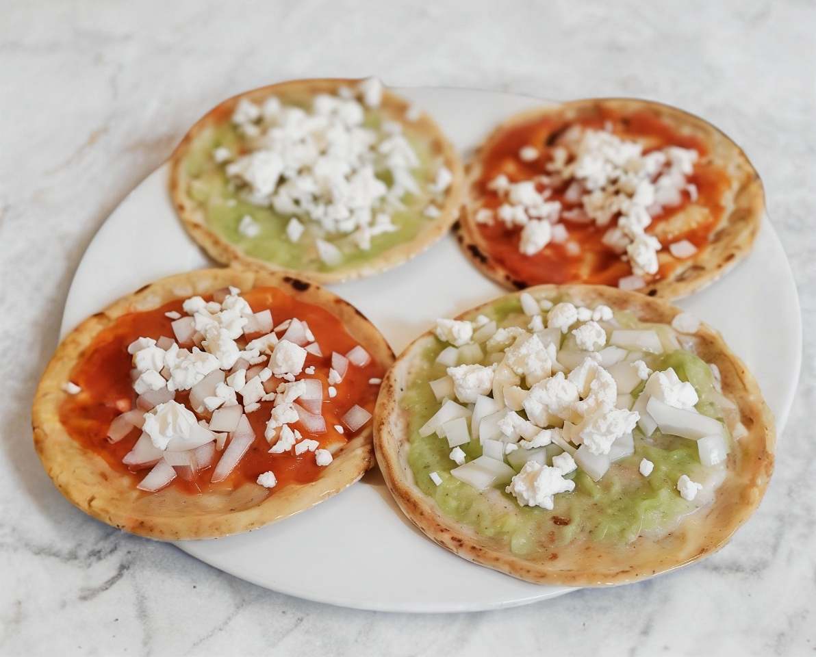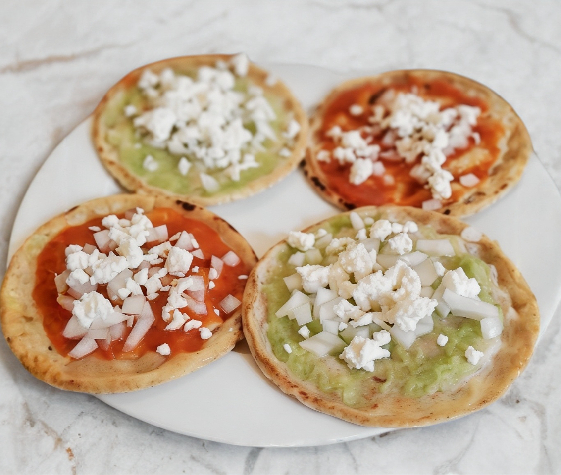 Elige tu favorita de salsa verde, roja, frijol o mole.