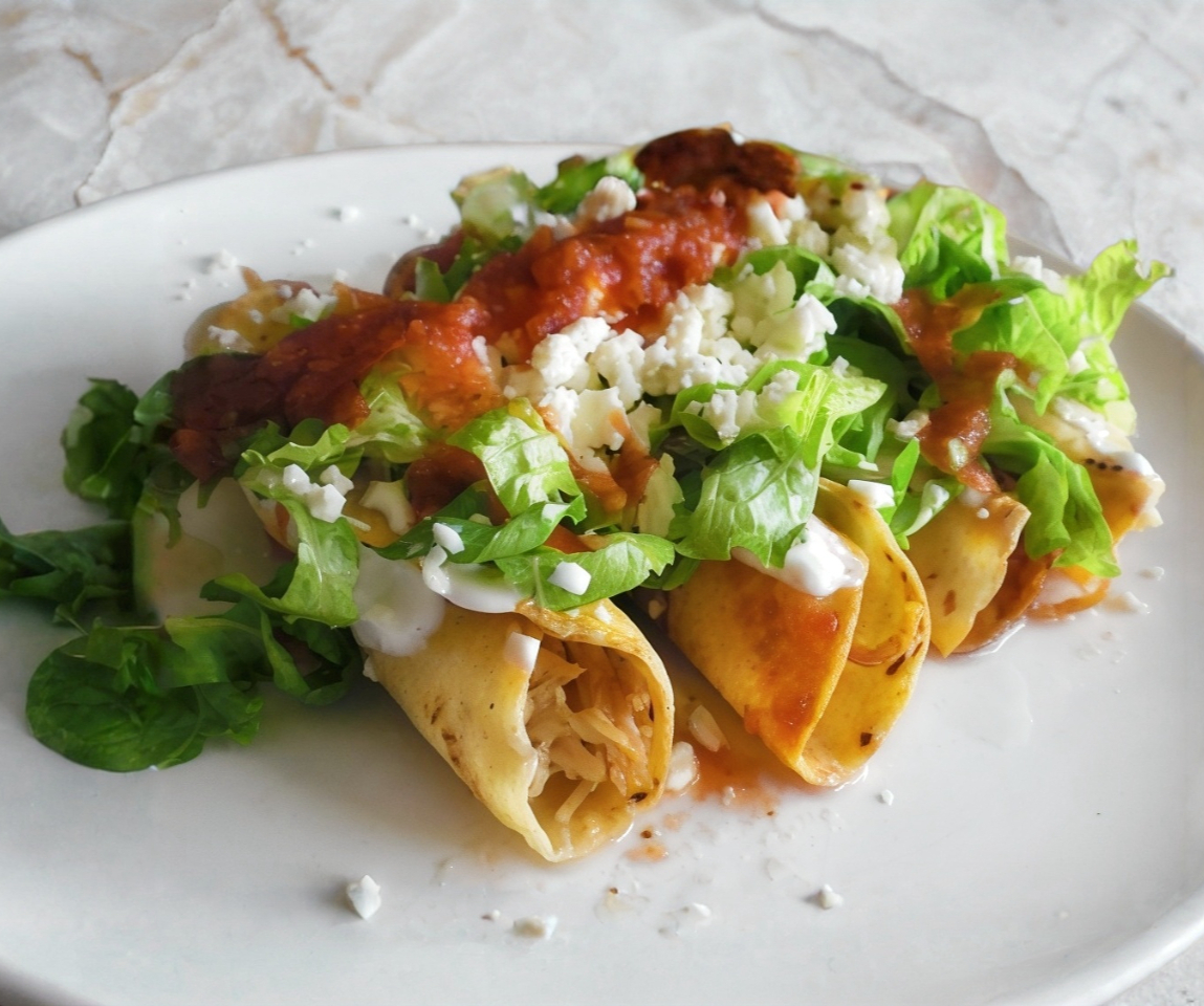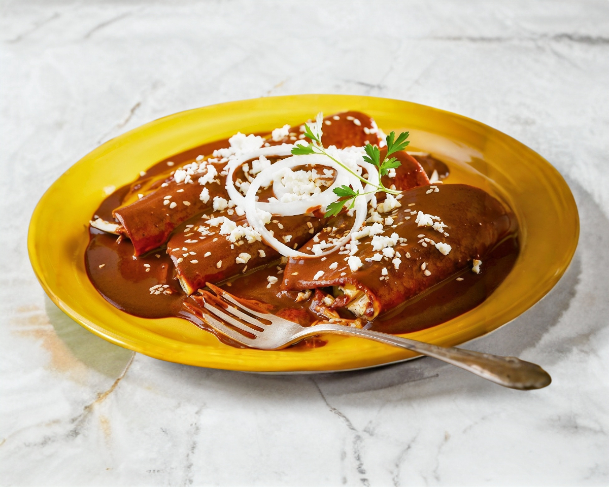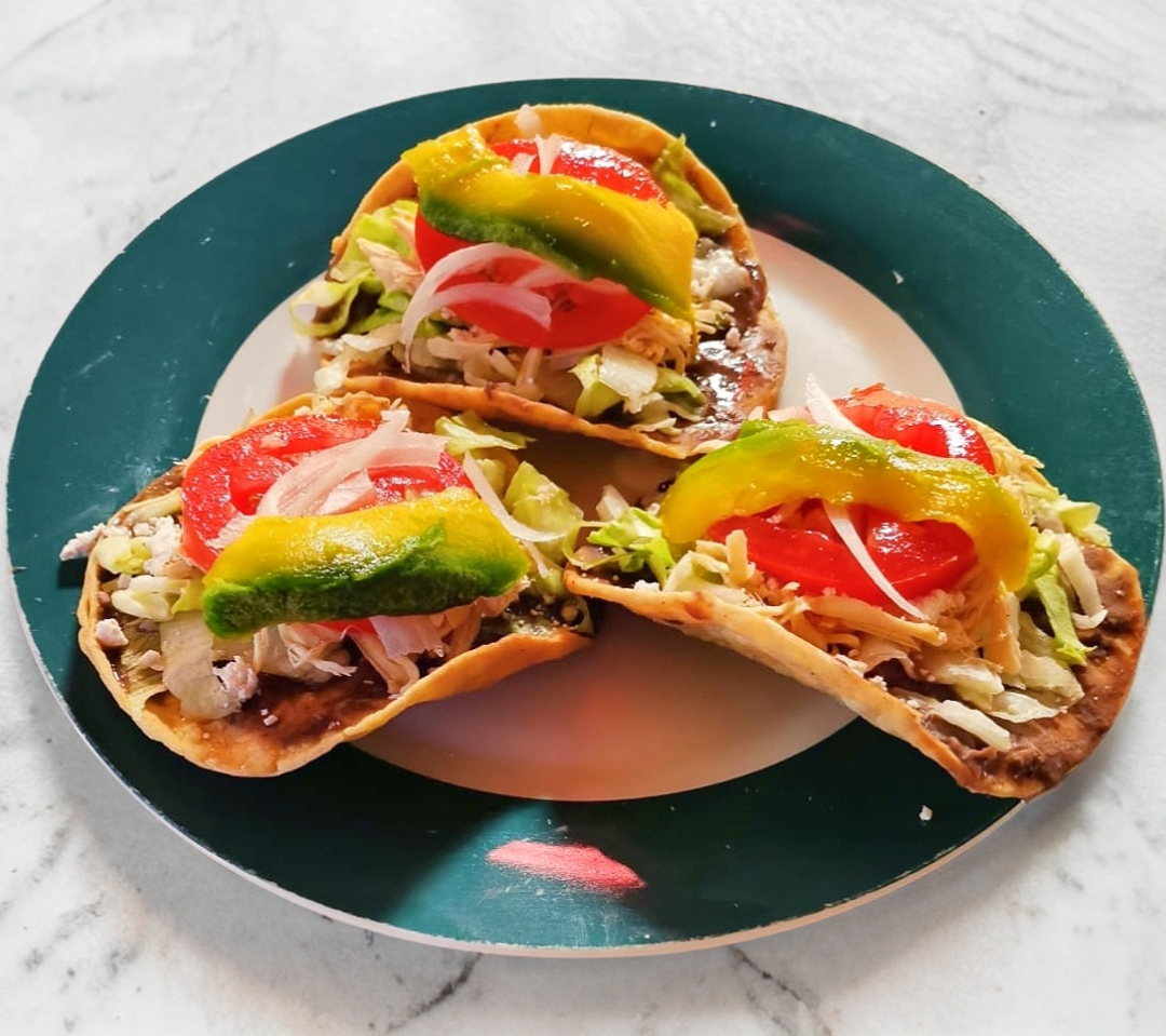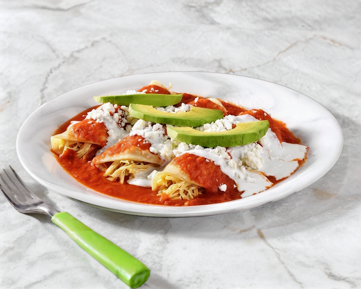Elige tu favorita de salsa verde, roja, frijol o mole.