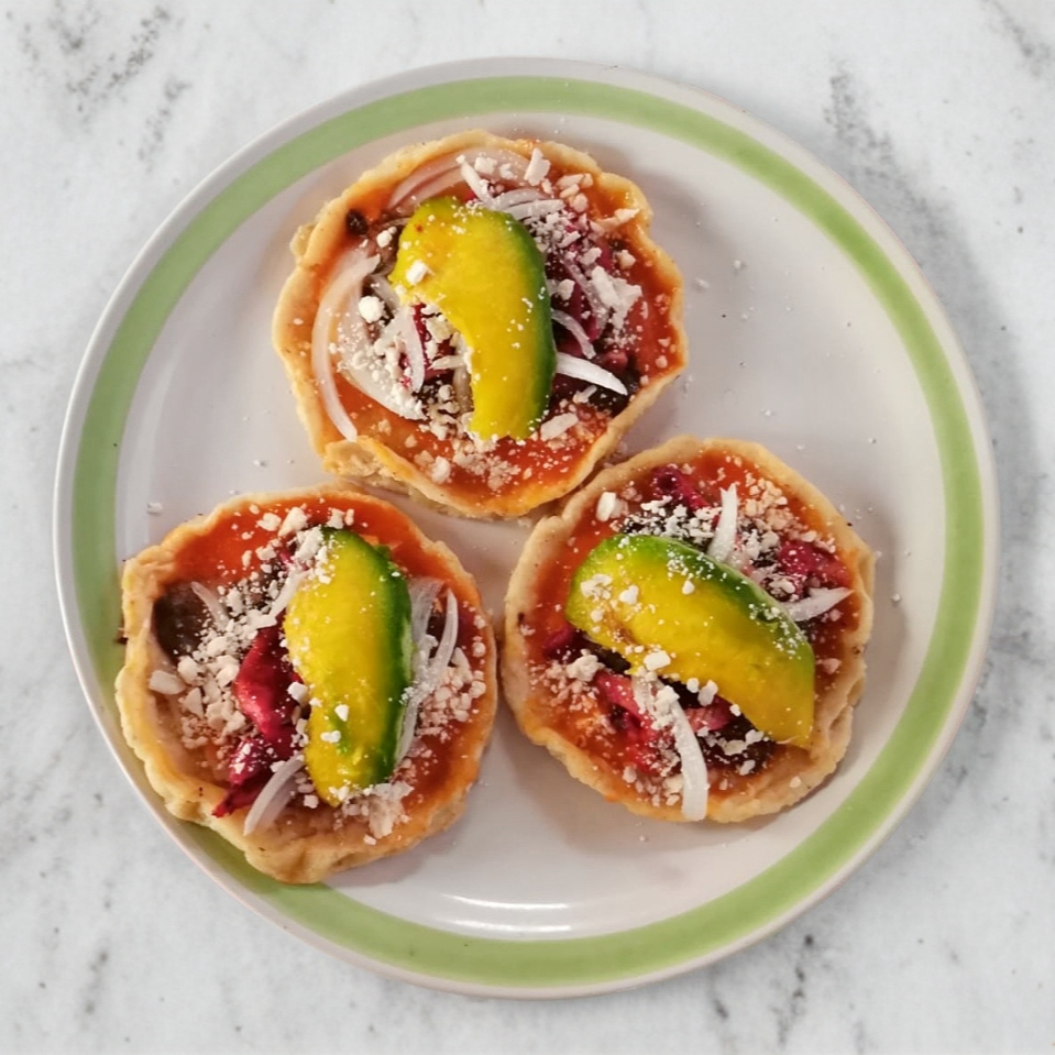 Elige tus picadas favoritas entre carne asada, molida, chinameca, pollo, longaniza, cochinita y huevo revuelto.
