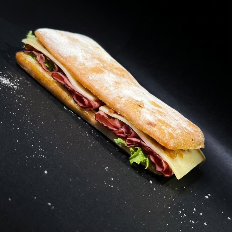 una chapata unica, con procciuto y queso cenizo de cabra, tienes que probarla.