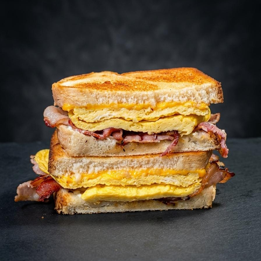 Ideal para el desayuno, queso, huevito revuelto, bacon y aderezo de ajo.