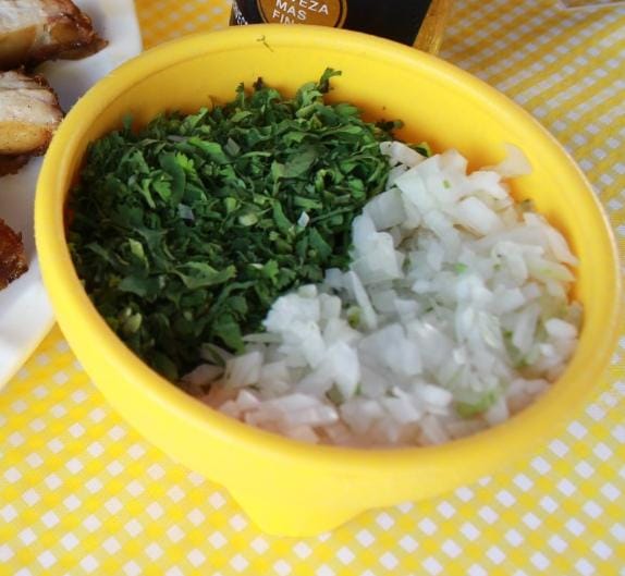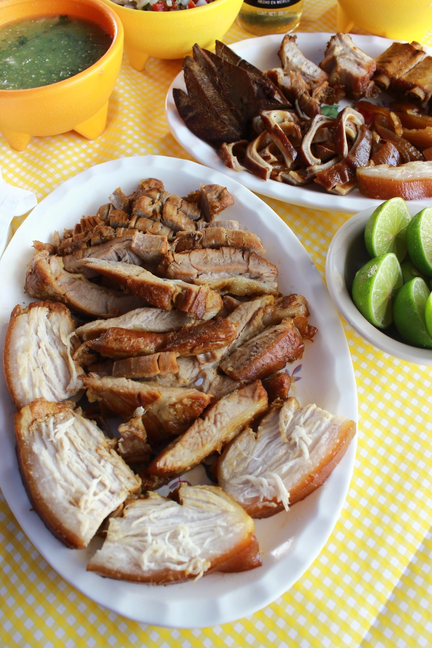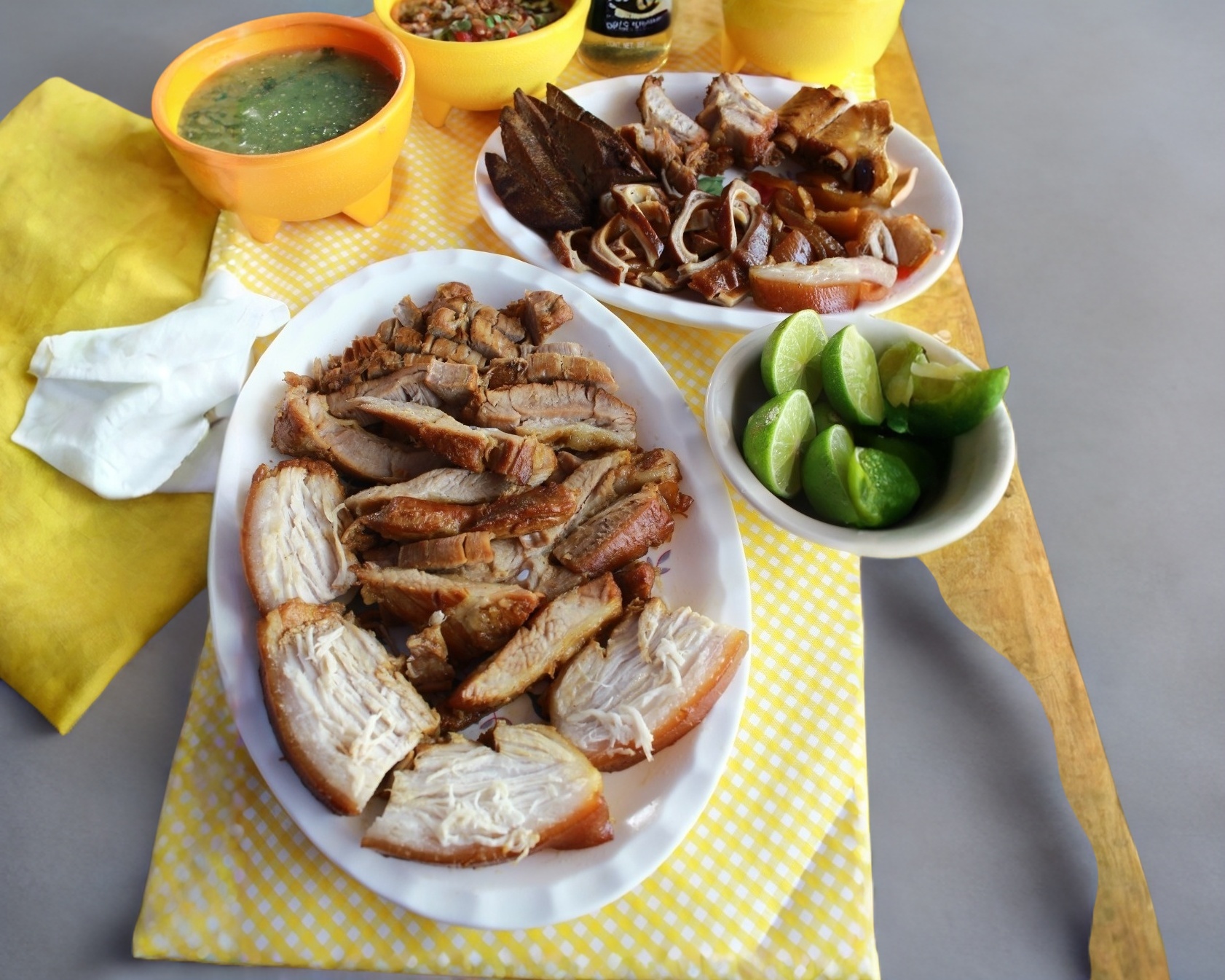 Platillo max. para dos personas :1/4 Kg de carnitas, acompañada de limones, 8 tortillas y una salsa de pico de gallo.