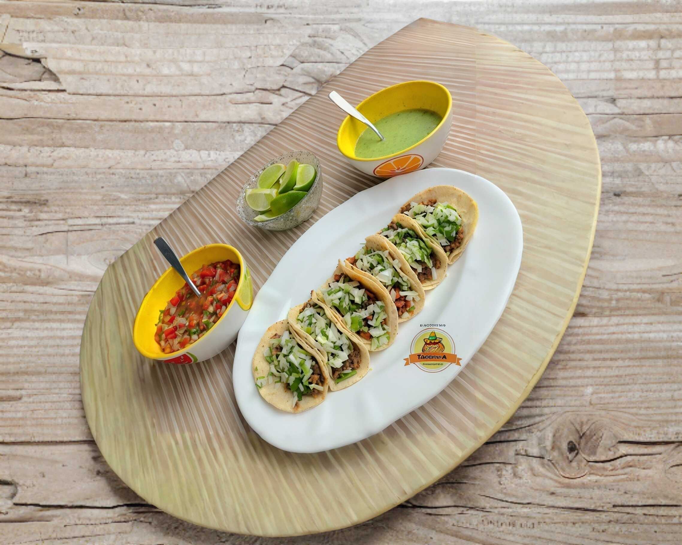 Taco de tortilla de maíz, carne de res picada con cebolla cocida