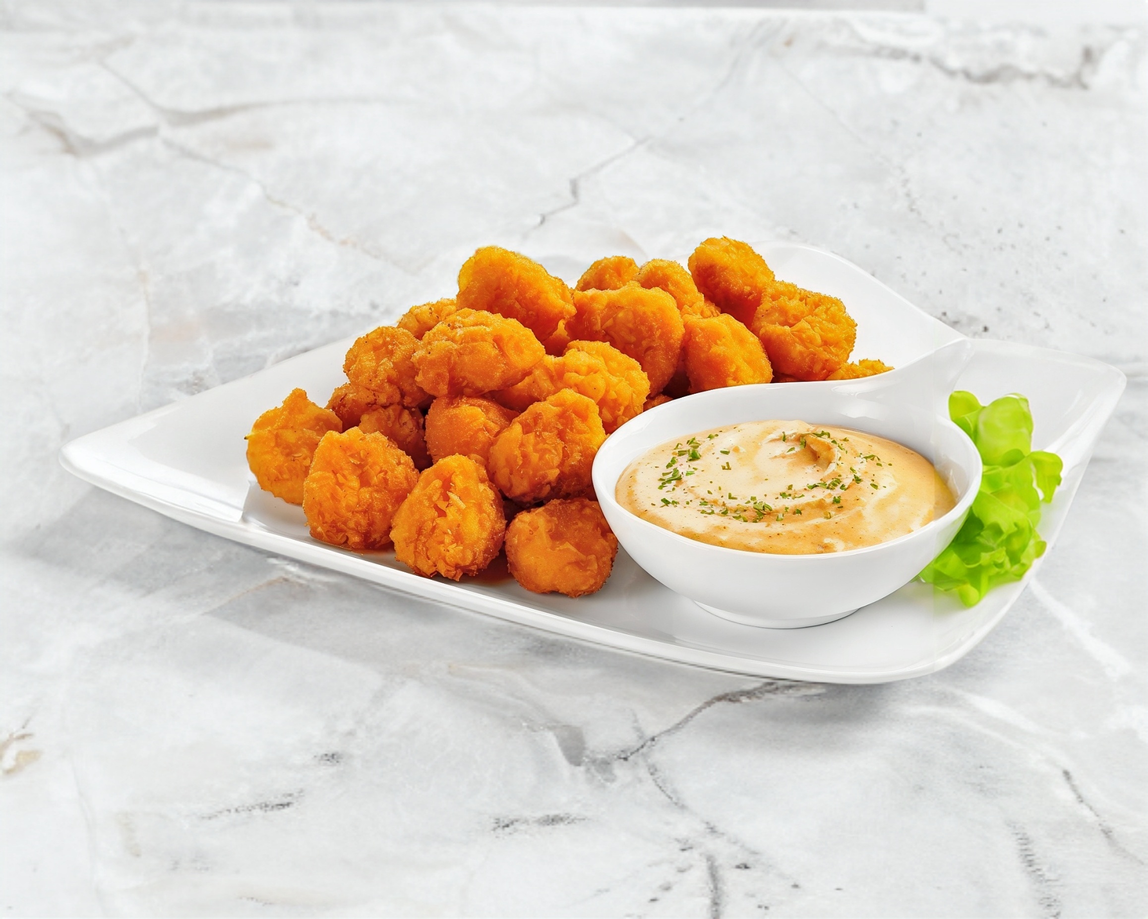 Bolitas de pollo naturales o acompañado de tu salsa favorita.